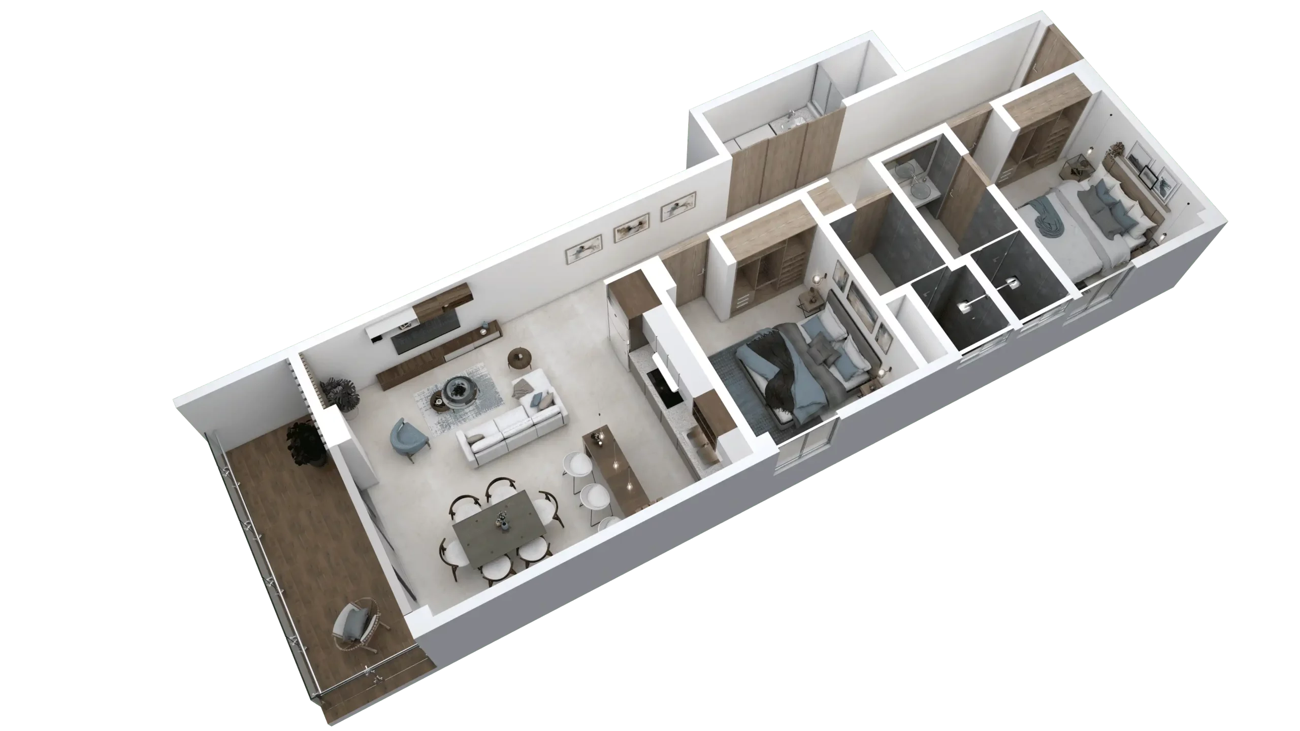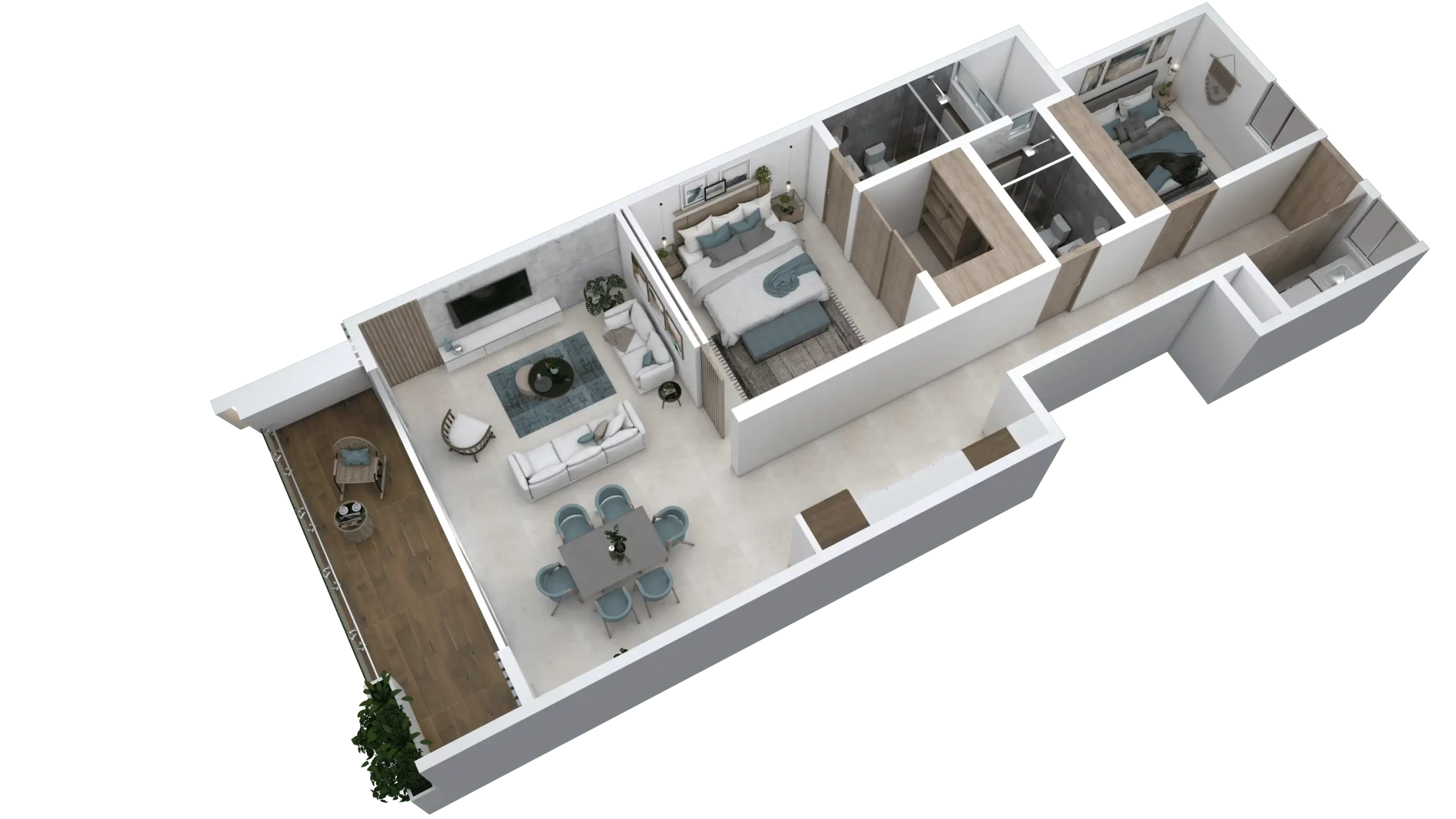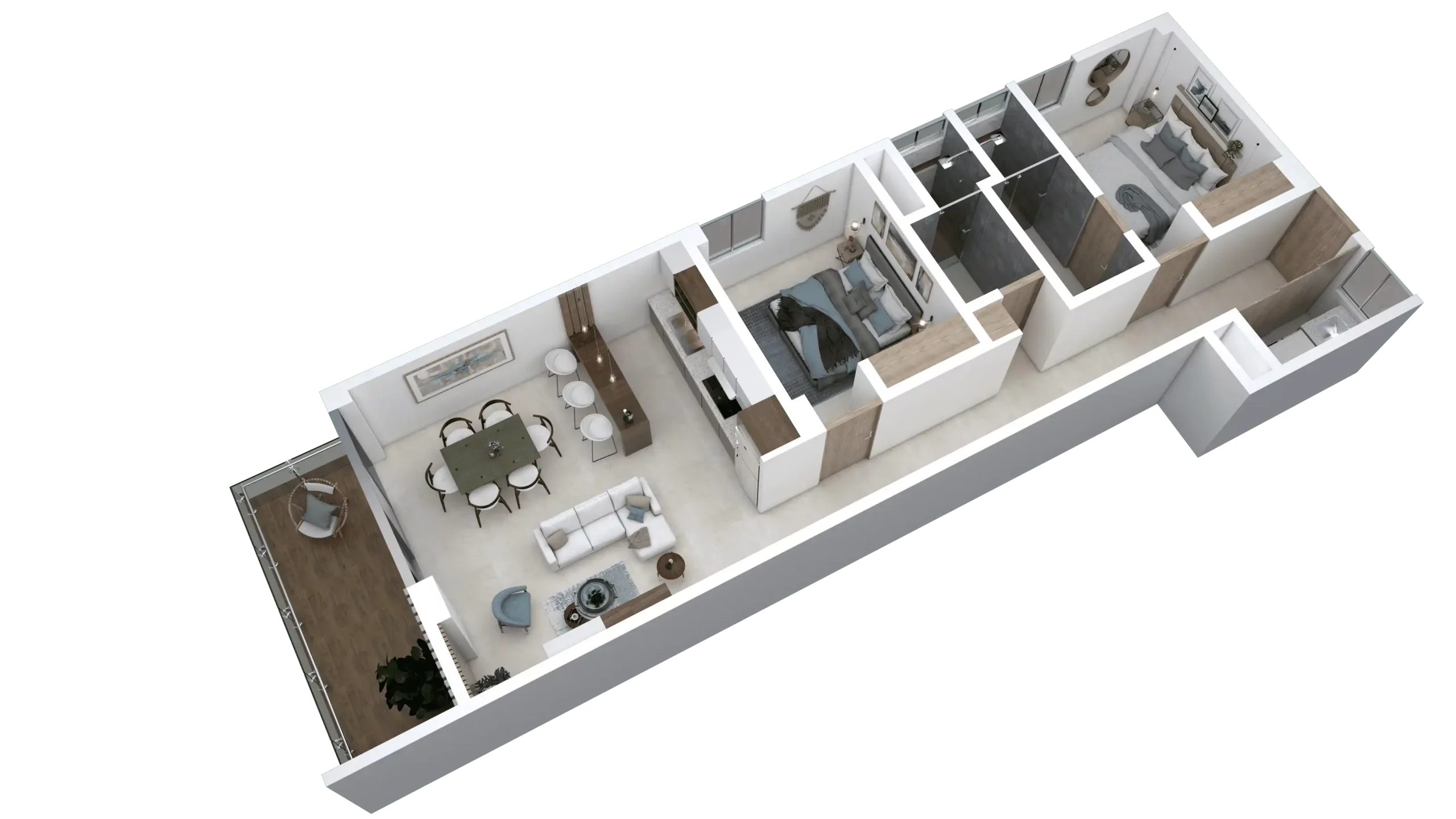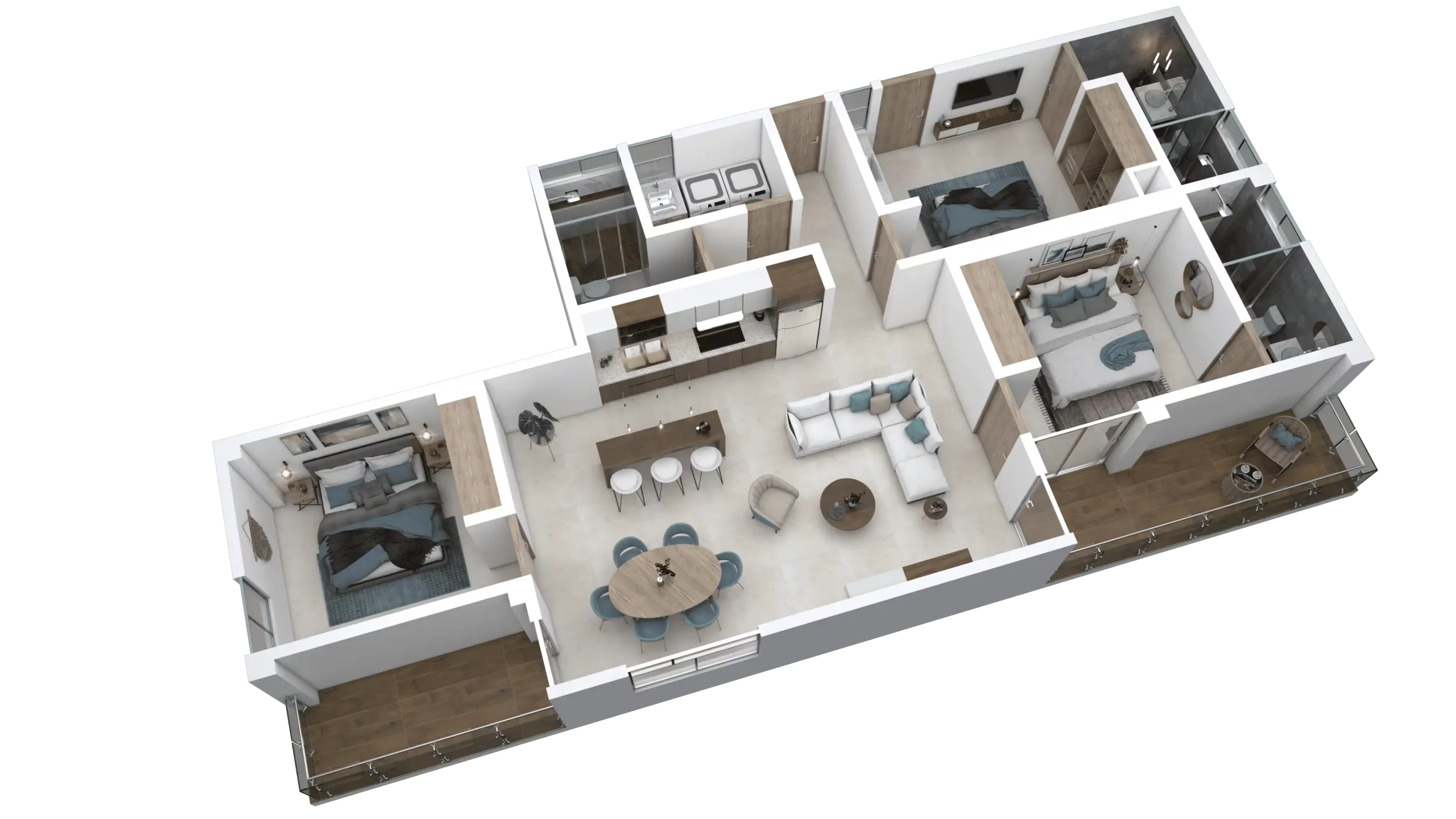 - 2 o 3 recámaras, cada una con su baño privado